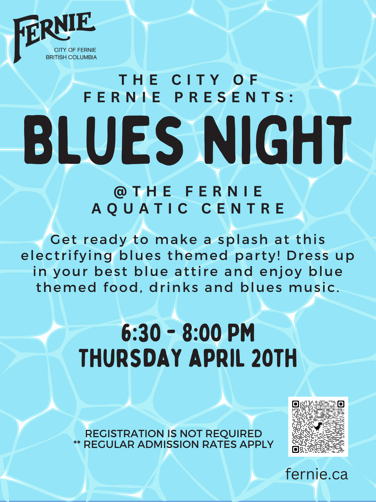 Join Fernie Aquatics Staff for Blues Night! Blue attire, blues music and blue snacks!