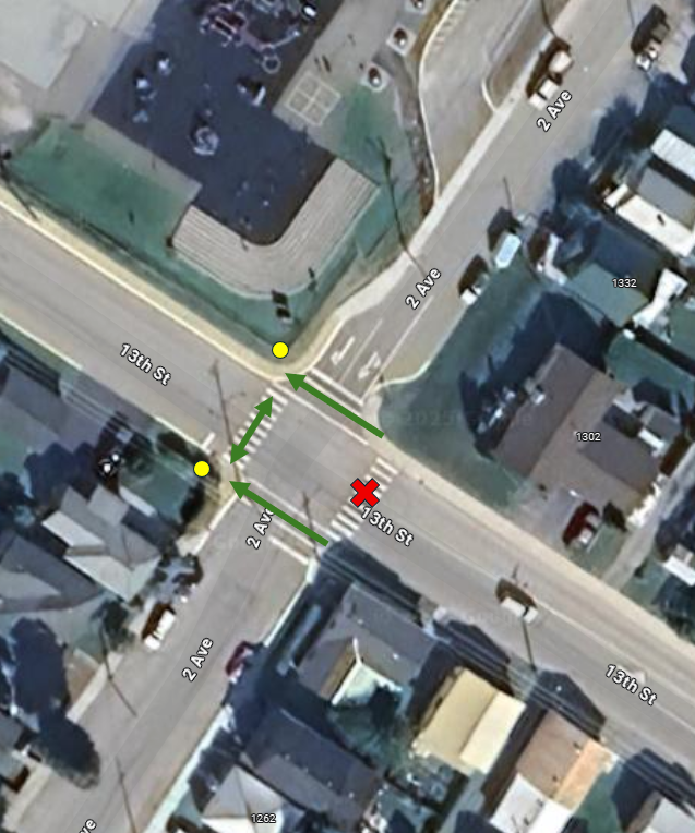 The City has installed new pedestrian activated flashing beacons at ÉIDES for pedestrians crossing 13th Street at 2nd Ave. The beacons were purchased by the Parent Advisory Council (PAC) at School District 5 (SD5) using funding from the Province’s Vision Zero Grant program.  Pedestrians will be encouraged to cross only at the north side of the 2nd Ave & 13th Street intersection, as opposed to the south side of the same intersection. Pedestrians should cross 2nd Ave at the stop signs to make their way to the flashing beacons. The City will be removing the painted crossing on the other side of the intersection. This will improve the predictability of pedestrians at the intersection and reduce driver-pedestrian interaction.